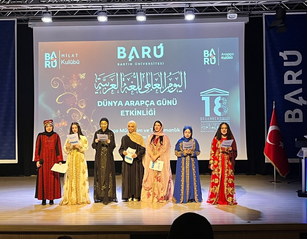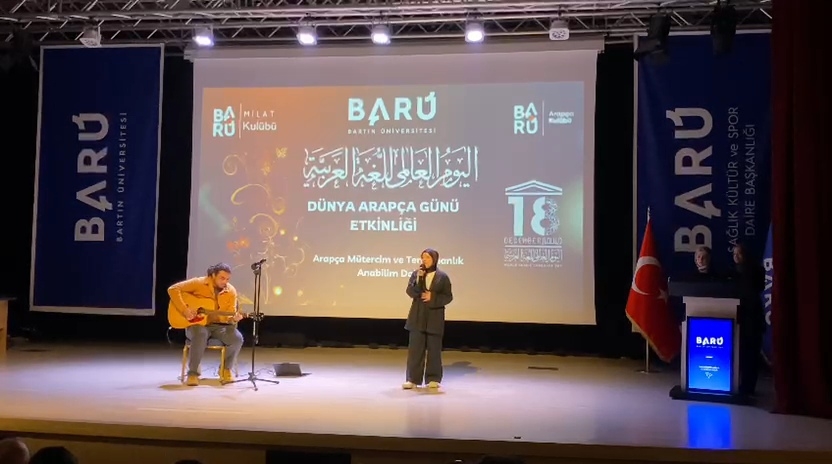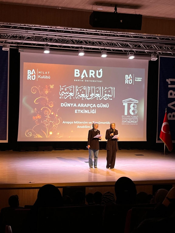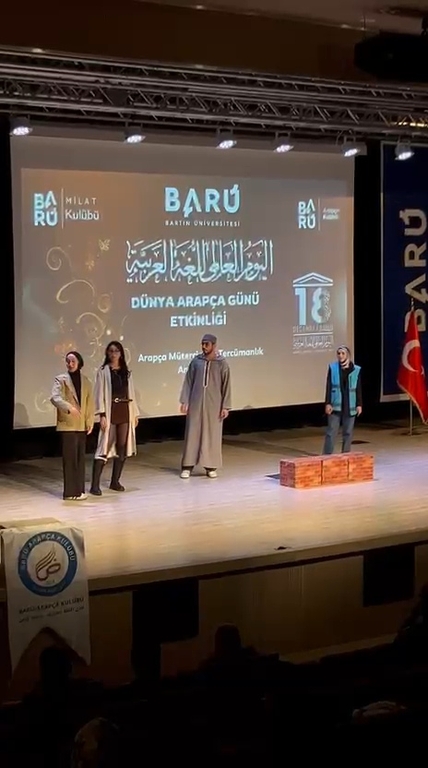 Arapça Mütercim ve Tercümanlık Anabilim Dalı tarafından Dünya Arapça Günü kapsamında düzenlenen etkinlik, öğrencilerin yoğun emek ve katkılarıyla başarıyla gerçekleştirildi. Etkinliğe Milat Kulübü ve Arapça Kulübü de destek verdi. Program kapsamında Arap dilinin tarihsel, edebî ve kültürel zenginliğini yansıtan çeşitli etkinlikler yer aldı. Öğrenciler tarafından seslendirilen Arapça şiirler ve şarkılar, sahnelenen tiyatro gösterileri ile Arap kültürünü ve medeniyetini yansıtan kültürel performanslar, katılımcılardan ilgi gördü. Etkinlik boyunca Arapçanın yalnızca bir iletişim aracı değil, aynı zamanda köklü bir kültür ve medeniyet dili olduğu vurgulandı.
