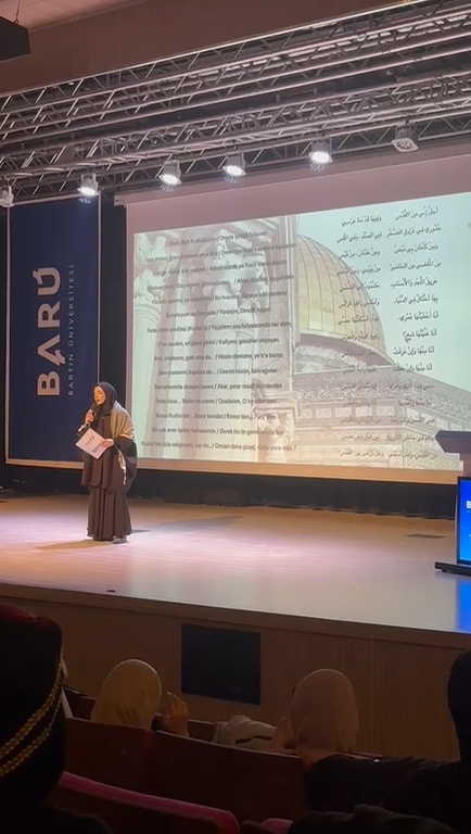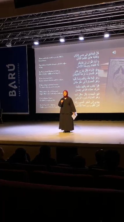 Dünya Arapça Günü vesilesiyle gerçekleştirilen bu etkinlik, öğrencilerin dil becerilerini sanatsal ve kültürel unsurlarla bütünleştirerek sergilemelerine imkân sağladı. Program, Arapça Mütercim ve Tercümanlık Anabilim Dalı öğrencilerinin aktif katılımı ve kulüplerin katkılarıyla verimli ve anlamlı bir şekilde tamamlandı.