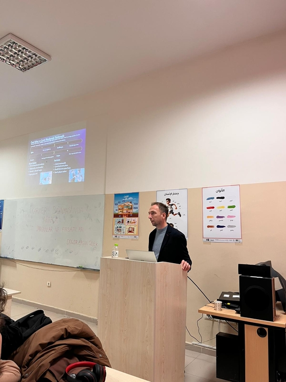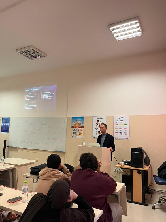 11 Aralık 2025 tarihinde saat 15.30’da, Edebiyat Fakültesi Mehmet Akif Ersoy Derslik Binası ED-Z-19 numaralı salonda gerçekleştirilen etkinlikte, Arapçanın günümüz kariyer alanlarındaki yeri ve sunduğu mesleki fırsatlar ele alındı.